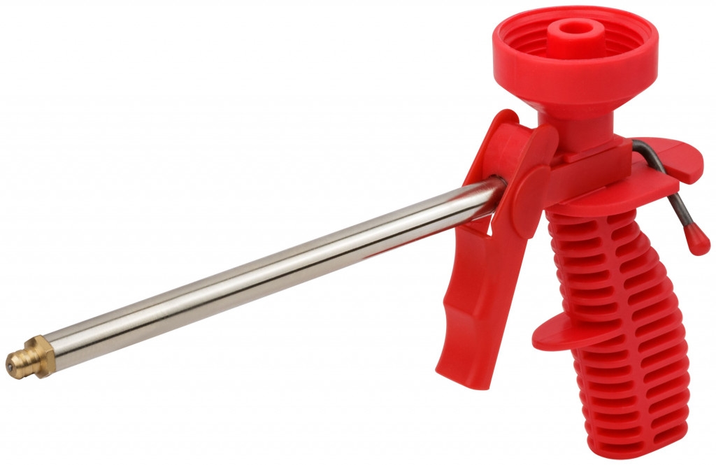 Пистолет для монтажной пены, пластиковый корпус. Для заполнения полостей, трещин, отверстий в различных материалах, при проведении монтажных, строительных, ремонтных работ. Материал: пластиковый корпус, клапан-латунь, подающая трубка-инструментальная сталь. Упаковка : картонный подвес .