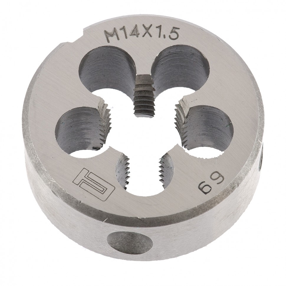 Плашка Сибртех 77036, М14 х 1,5 мм, поможет нарезать внешнюю метрическую резьбу. Она проста в использовании, поэтому пригодится в быту при проведении слесарных и монтажных работ даже начинающим мастерам. Цельная конструкция плашки позволяет полностью захватывать деталь и нарезать ее за один проход, благодаря чему получается высокоточная и качественная резьба.