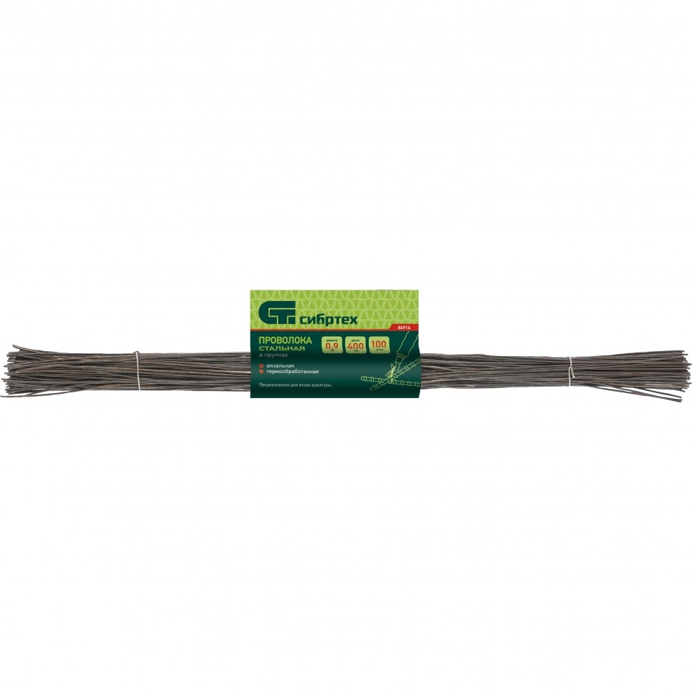 Проволока стальная вязальная в прутках 400 мм х100 шт. термообработанная 0,9 мм, Сибртех