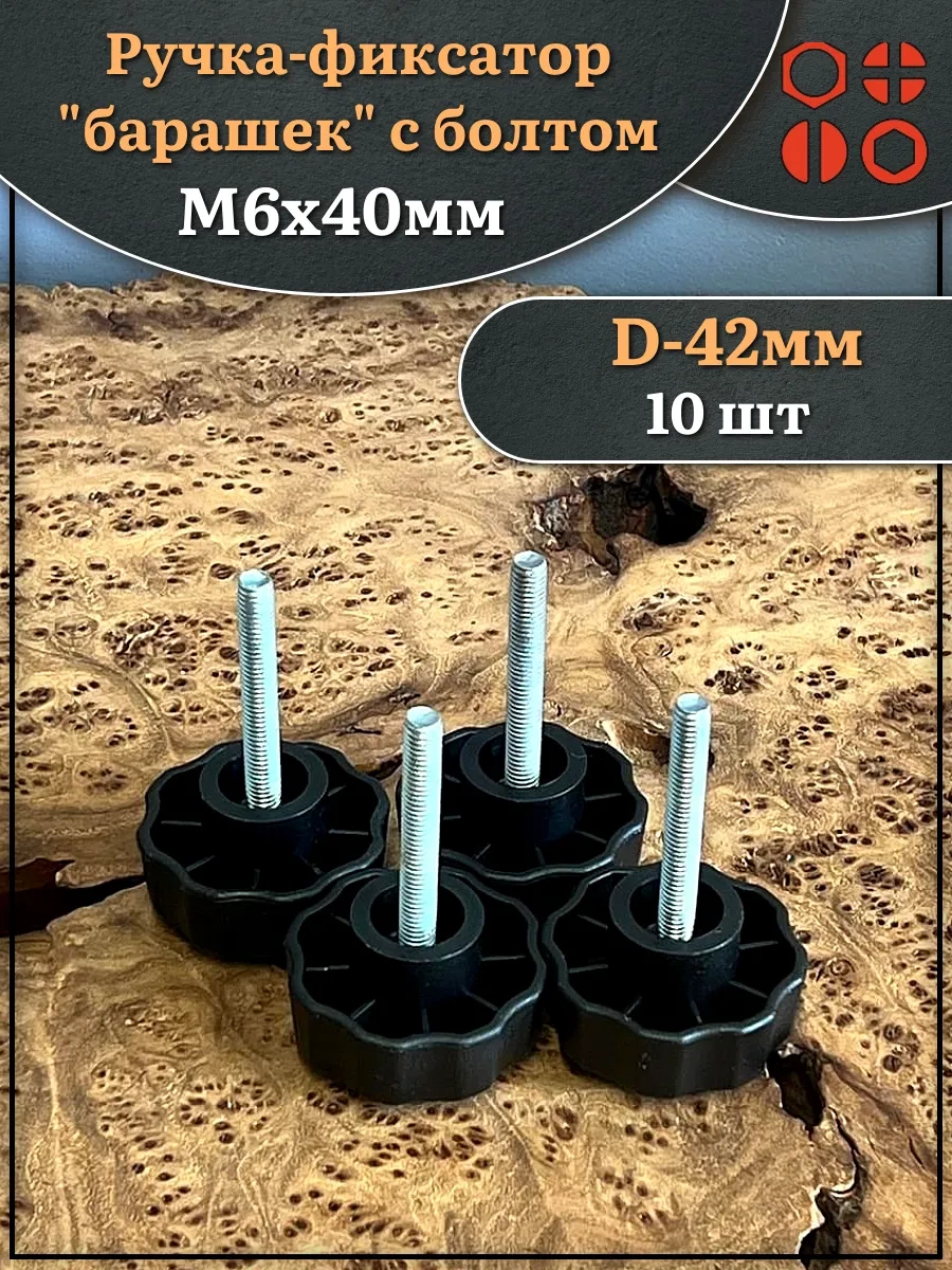 | Ручка фиксатор барашек d 42 с болтом М6х40,10 шт. | 35-1007ф10 | 1 шт. |