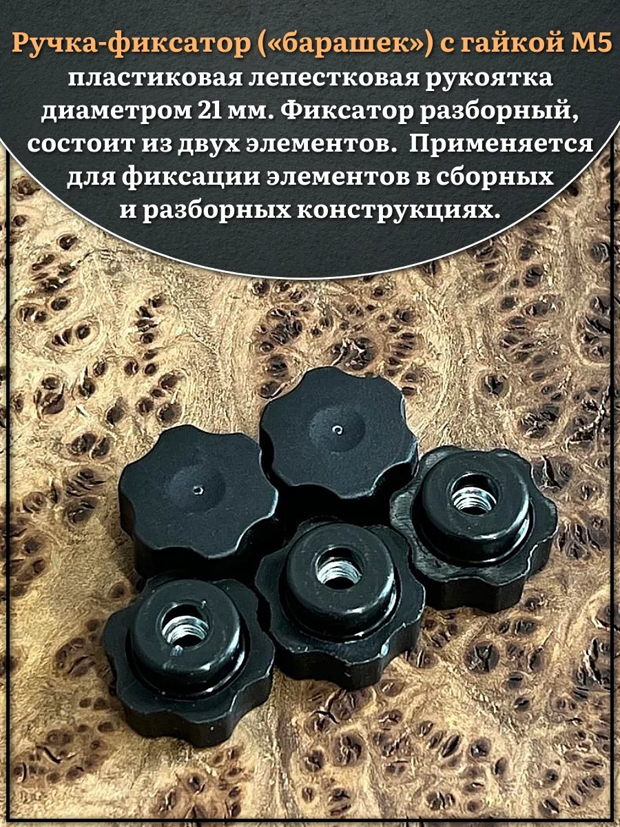 | Ручка фиксатор барашек разборный d21 с гайкой М5, 2 шт. | 35-0200ф2 | 1 шт. |