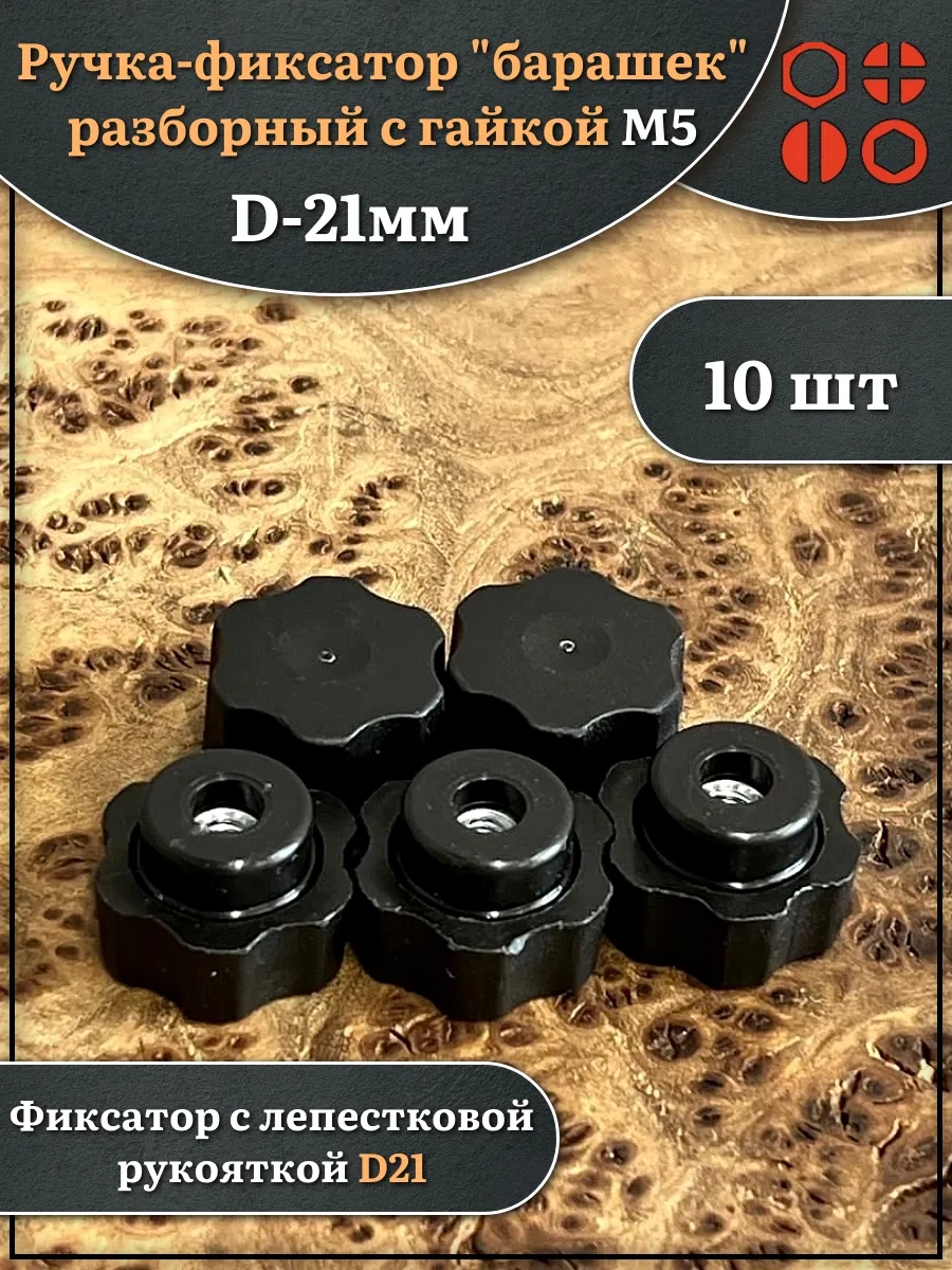 | Ручка фиксатор барашек разборный d21 с гайкой М5, 10 шт. | 35-0200ф10 | 1 шт. |