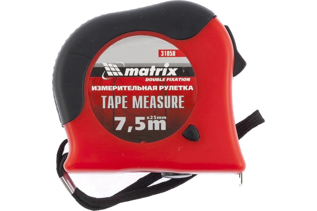 Рулетка Double fixation 7,5м х 25мм. обрезинен.корп., двойная плавная фикс Matrix