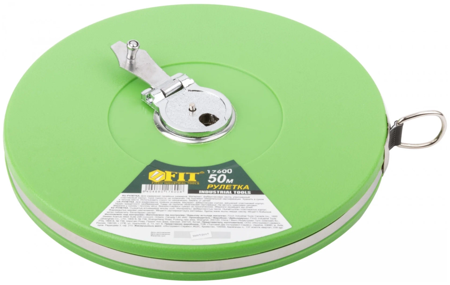 Рулетка фибергласовая лента, зел.пластик.корпус 50м