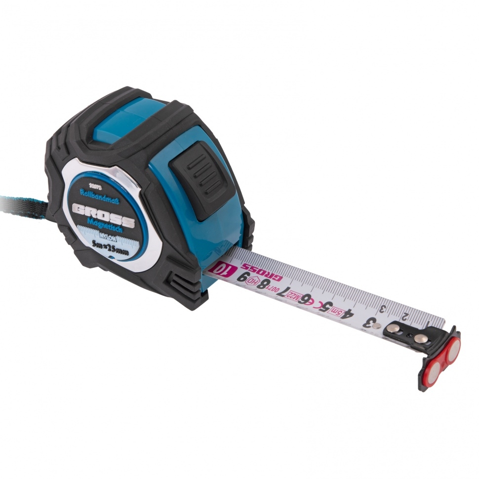 Рулетка Magnetisch,обрезин.корп.,магнит.зацеп, нейлон.покр., автоматич.фикс. 5м х25 мм Gross