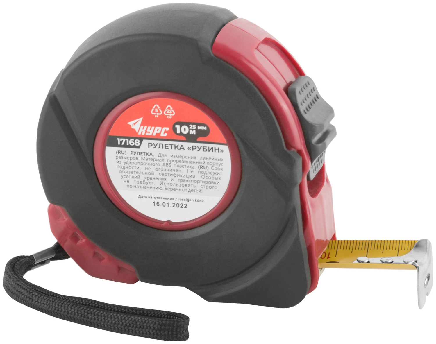 Рулетка Рубин, прорезин.корп., 10м х 25мм