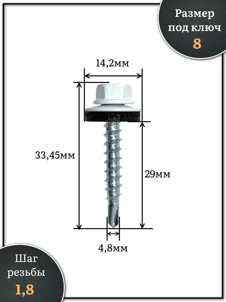 Саморез кровельный, 4,8х29 сигнально-белый RAL9003 1000 шт
