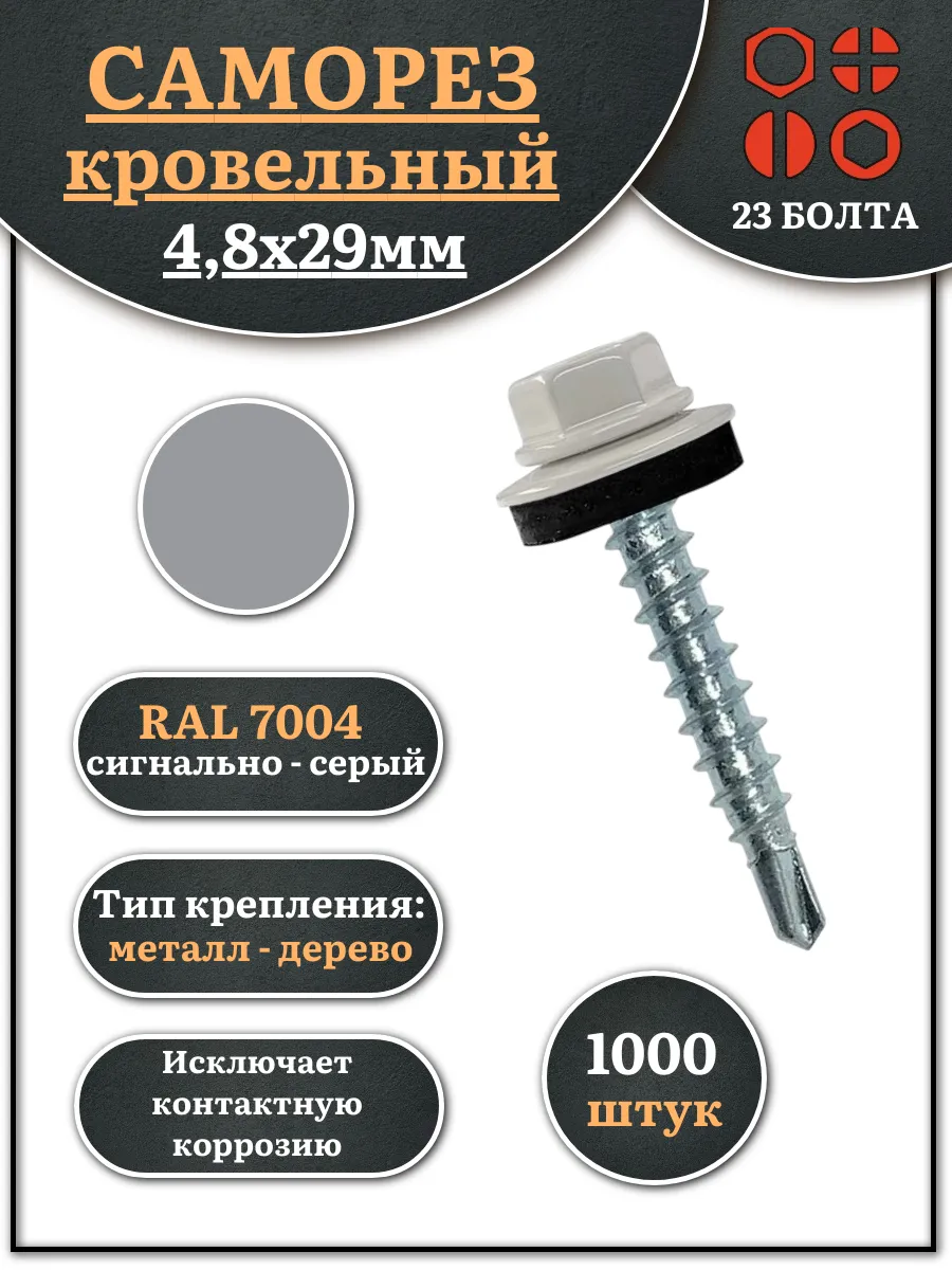 Саморез кровельный, 4,8х29 сигнально-серый RAL7004 1000 шт