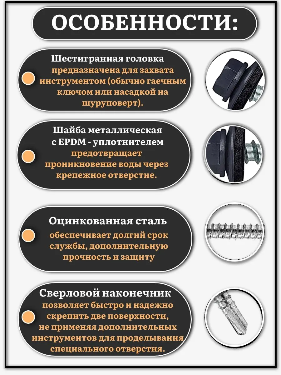 Саморез кровельный, 4,8х35 графитовый серый RAL7024 1000 шт