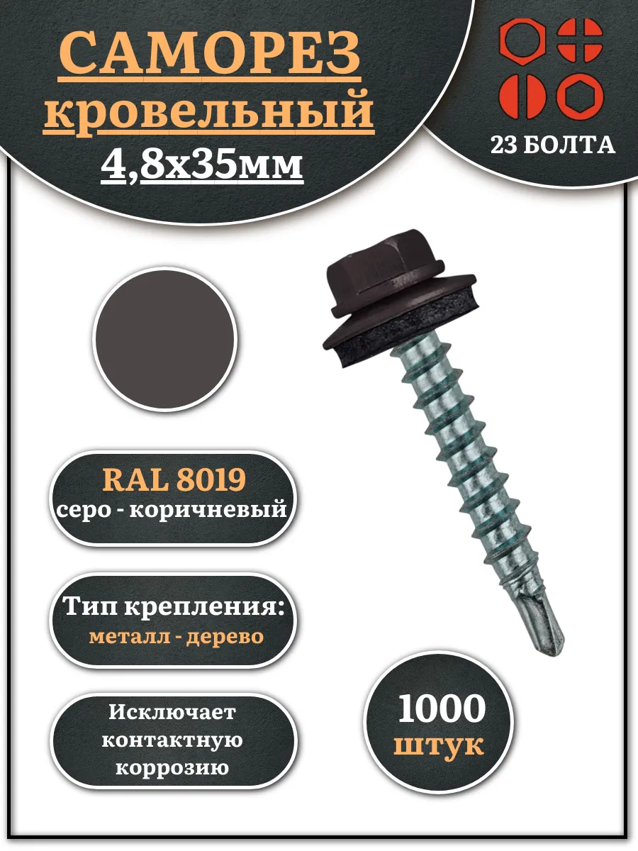 Саморез кровельный, 4,8х35 серо-коричневый RAL8019 1000 шт