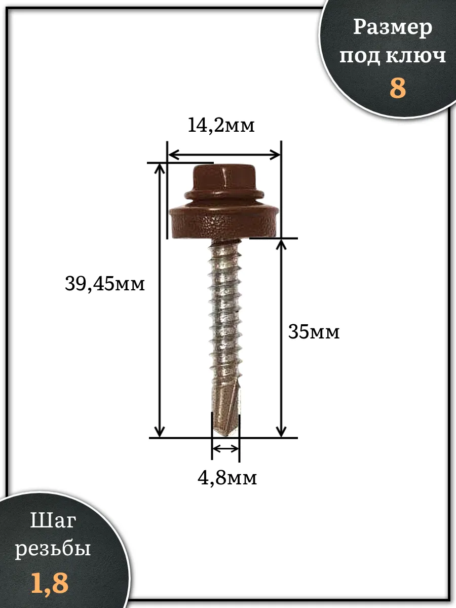 Саморез кровельный, 4,8х35 шоколадно-коричневый RAL8017 500 шт