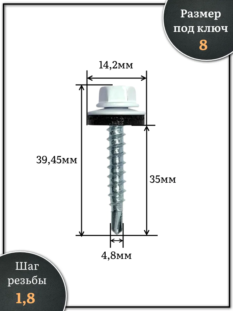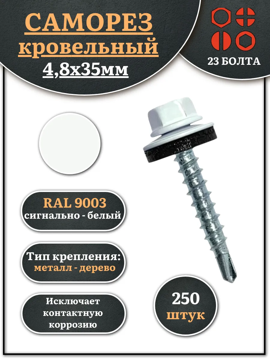 Саморез кровельный, 4,8х35 сигнально-белый RAL9003 250 шт