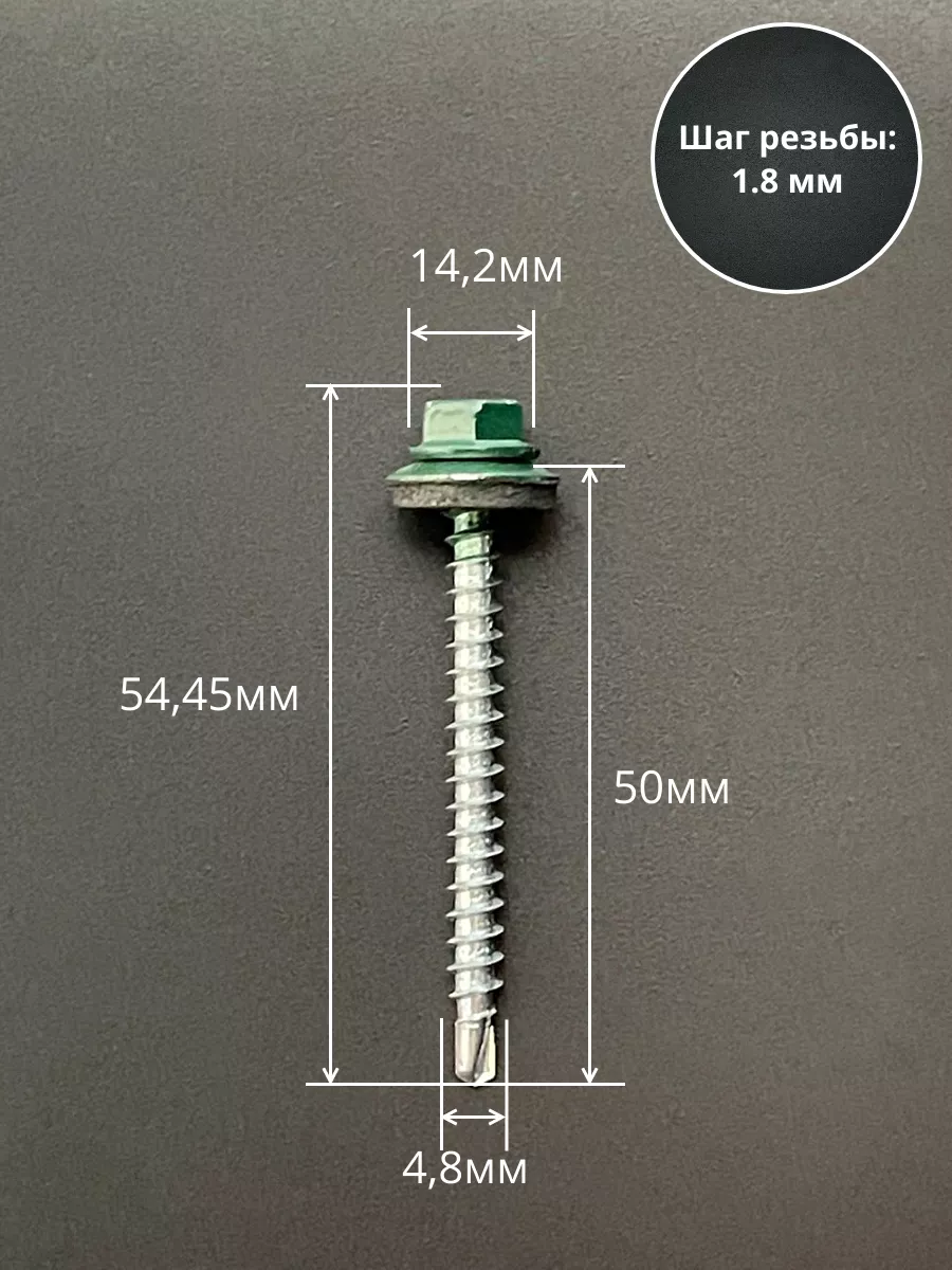 Саморез кровельный, 4,8х50/51 зеленый мох RAL6005 50 шт