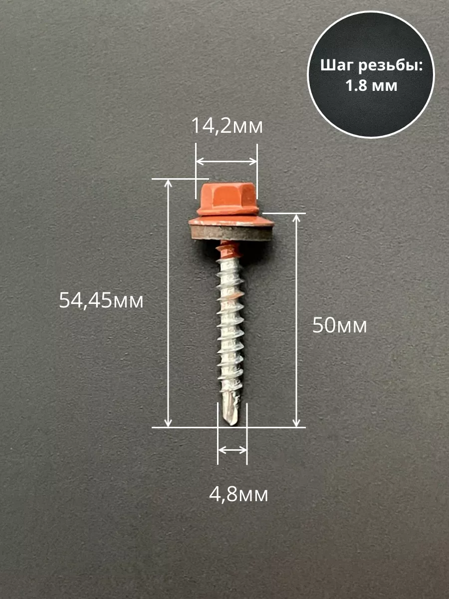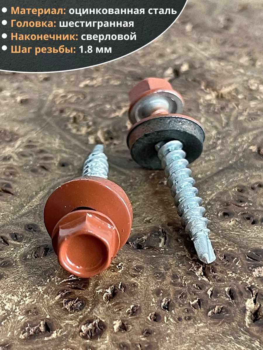Саморез кровельный, 4,8х50 медно-коричн. RAL8004 50 шт