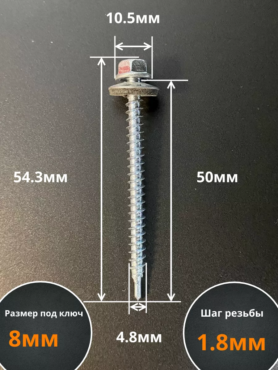 | Саморез кровельный 4,8х50 мм с шайбой (под сверло),ОЦ 50шт. | B03004805136P07ф50 | 1 шт. |