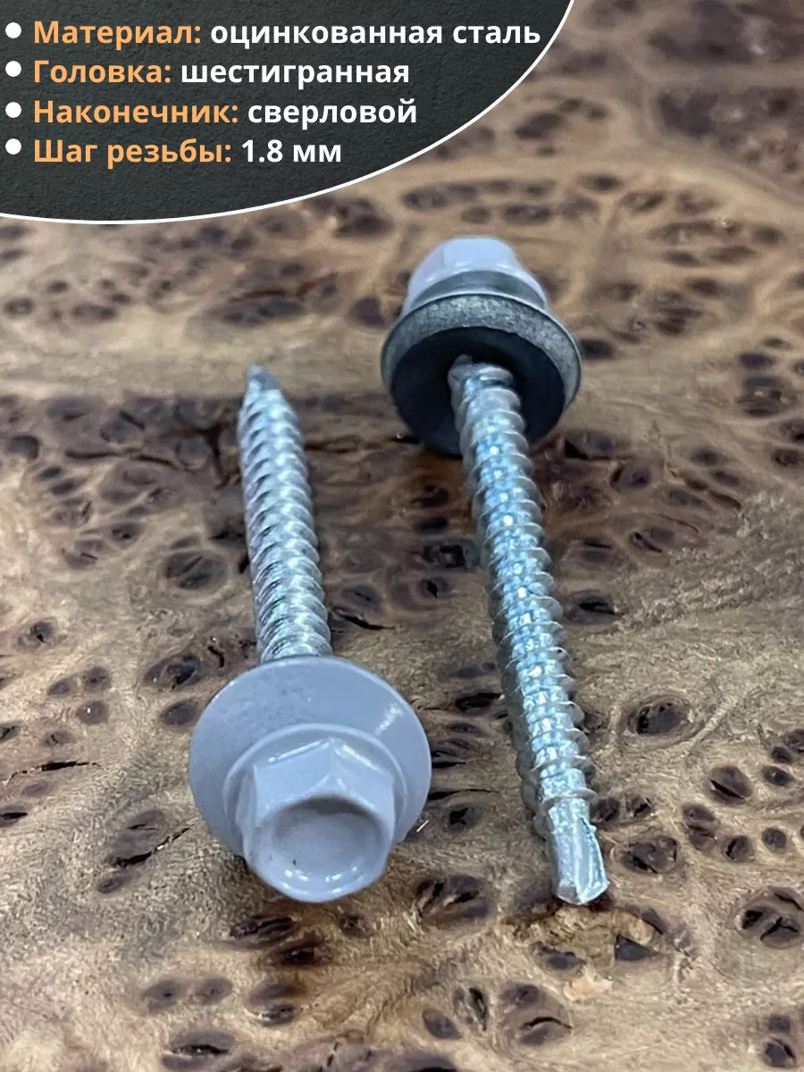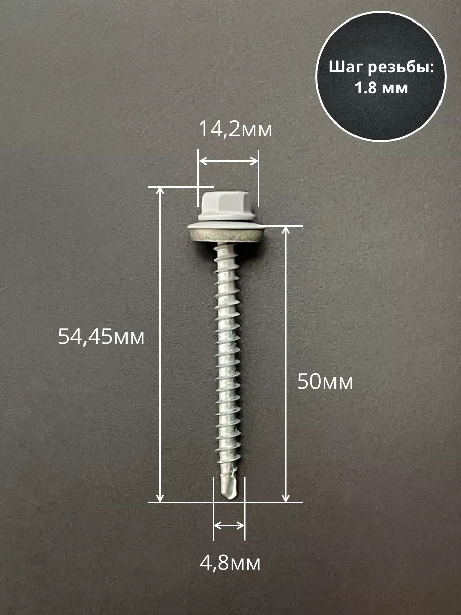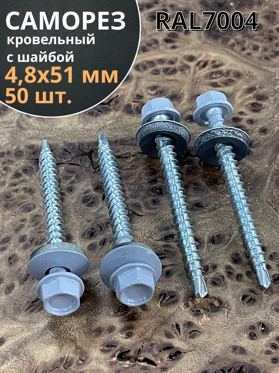Саморез кровельный, 4,8х51 сигнально-серый RAL7004 50 шт