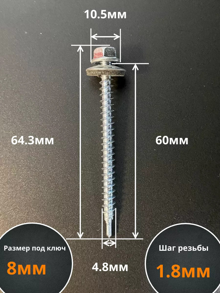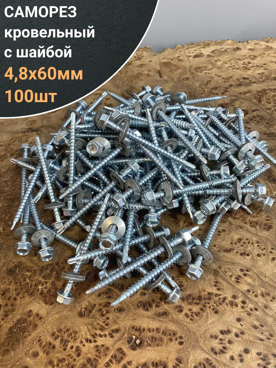 Саморез кровельный 4,8х60 мм с шайбой (под сверло),ОЦ 100шт.