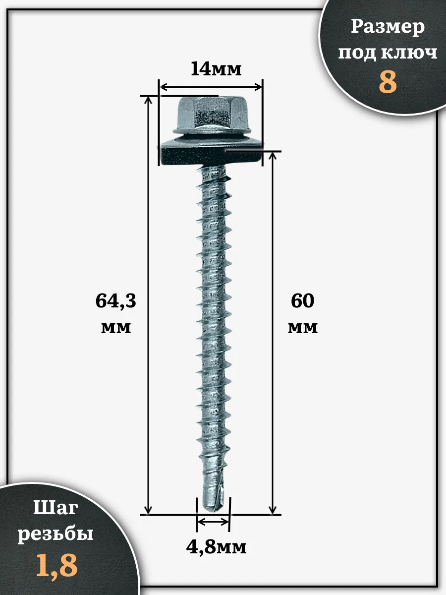 Саморез кровельный 4,8х60 мм с шайбой (под сверло),ОЦ 250шт.
