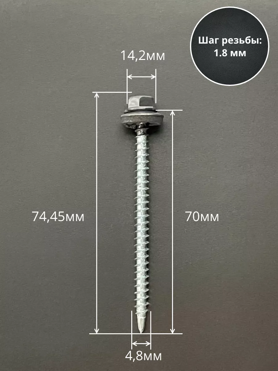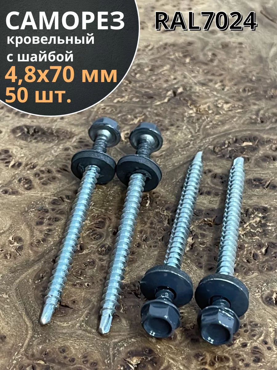 Саморез кровельный, 4,8х70 графитовый серый RAL7024 50 шт