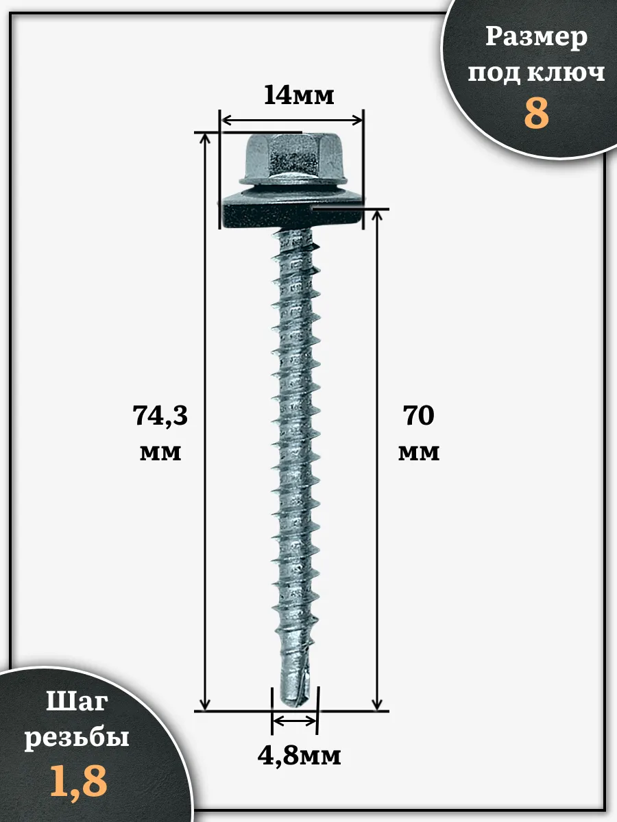 Саморез кровельный 4,8х70 мм с шайбой (под сверло),ОЦ