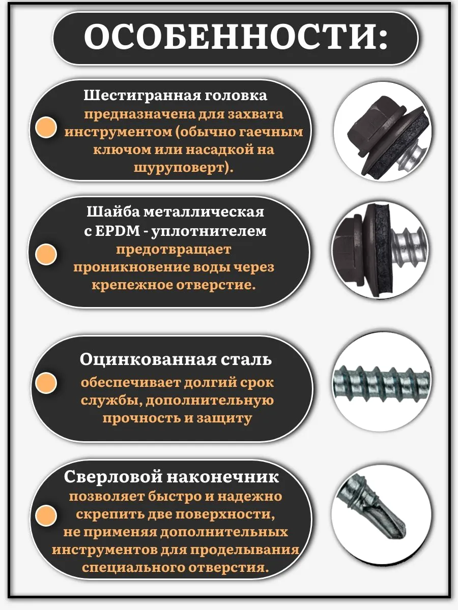Саморез кровельный, 4,8х70 серо-коричневый RAL8019 1000 шт