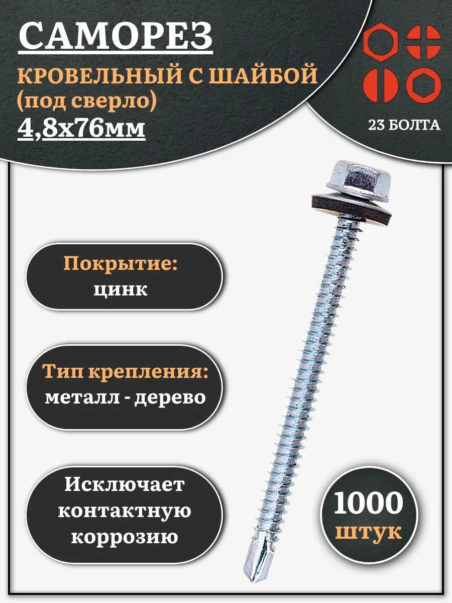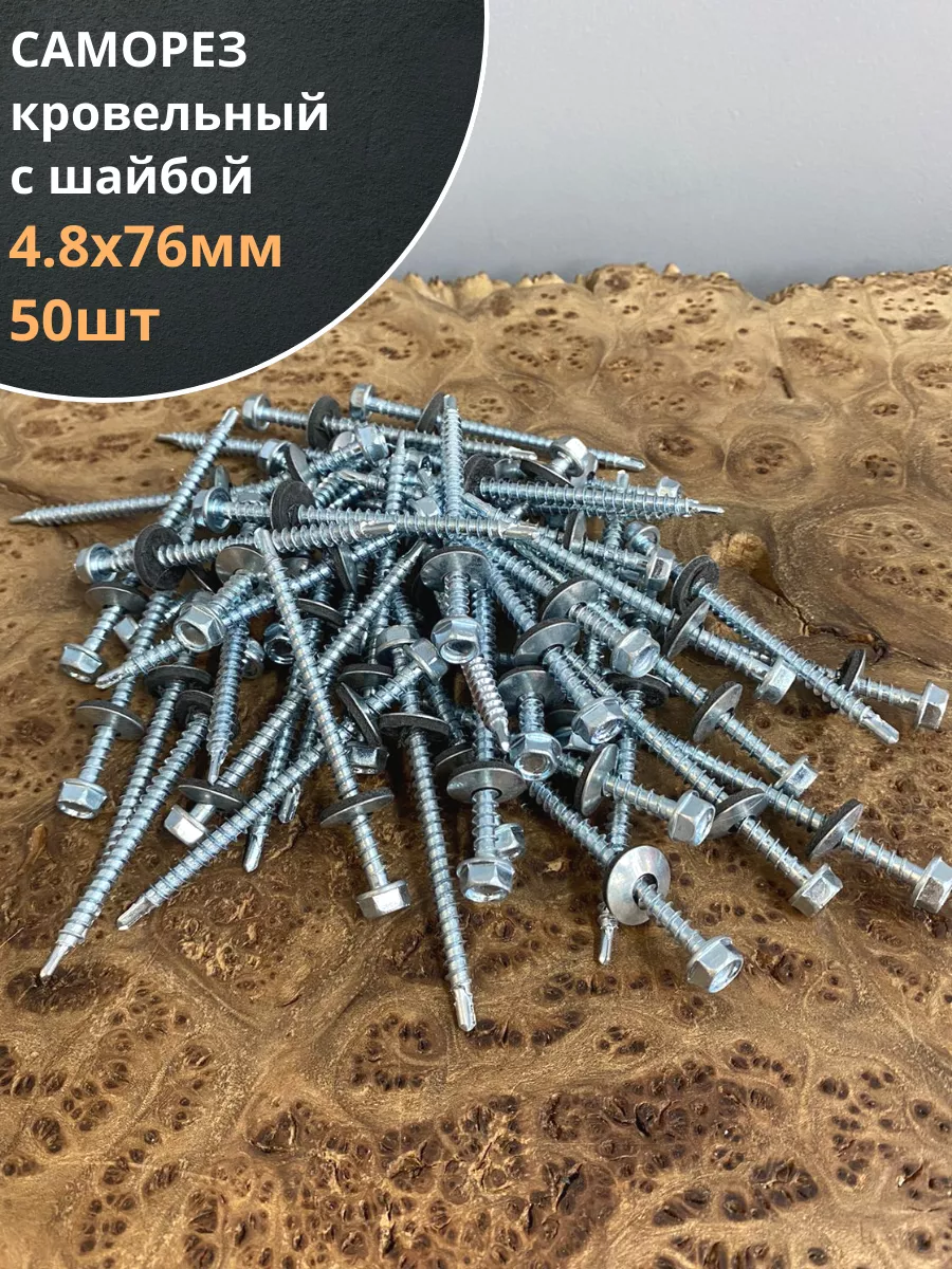 Саморез кровельный 4,8х76 мм с шайбой (под сверло),ОЦ