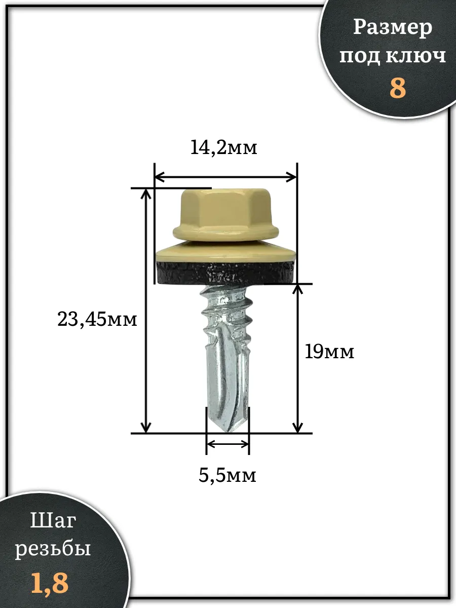Саморез кровельный, 5,5х19 бежевый RAL1014 250 шт