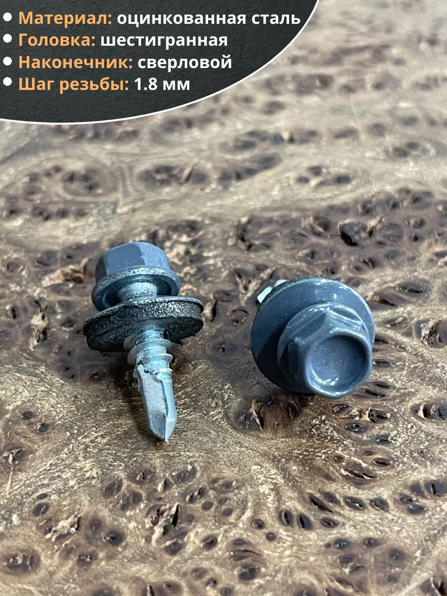 Саморез кровельный, 5,5х19 графитовый серый RAL7024 50 шт