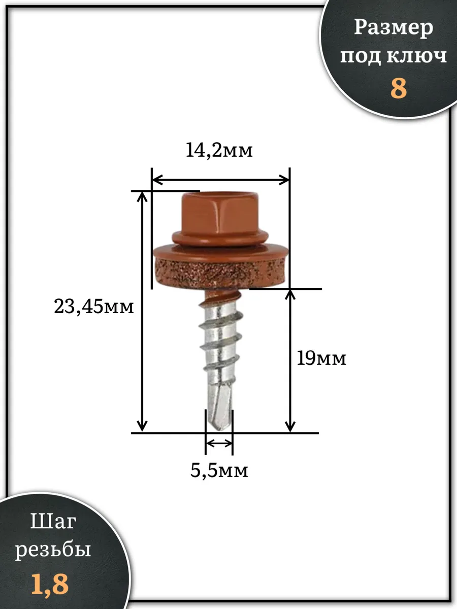 Саморез кровельный, 5,5х19 медно-коричн. RAL8004 1000 шт