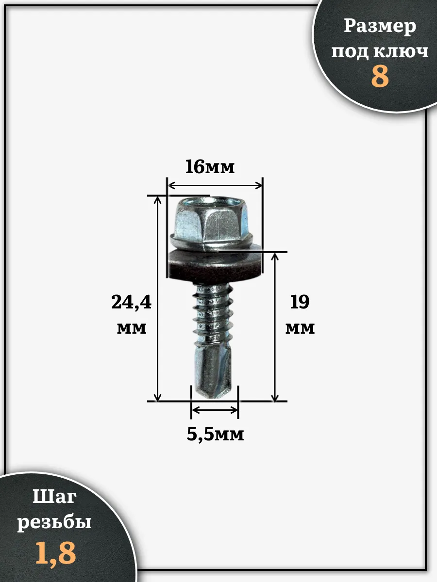 Материал: Оцинкованная сталь Саморез кровельный с шестигранной головкой и уплотнительной EPDM шайбой используется для создания точки резьбового крепления листового металла и профилей к стальным подконструкциям и каркасам. Служит в качестве элемента точечного крепления для водонепроницаемого соединения типа “металл - металл”. Самосверлящий шуруп предназначен для быстрой установки за один этап. Самосверлящий шуруп из оцинкованной стали представляет собой резьбовой элемент крепления для монтажа металлических кровельных покрытий. Шестигранный шуруп оснащен пресс-шайбой интегрированной с уплотняющей прокладкой из синтетического каучука EPDM. Параметры резьбы и форма наконечника самореза в виде сверла максимально адаптированы для крепления кровельного металла к металлическим подконструкциям.