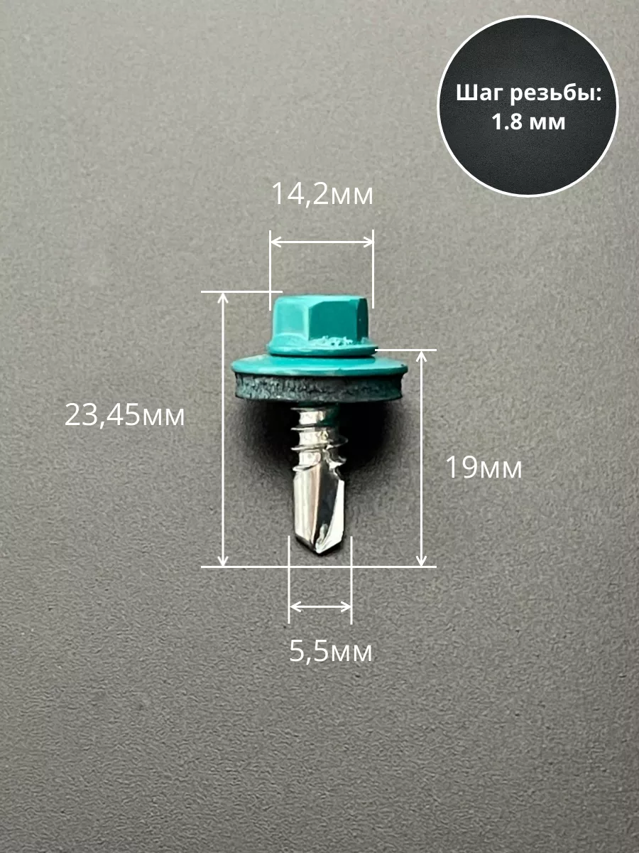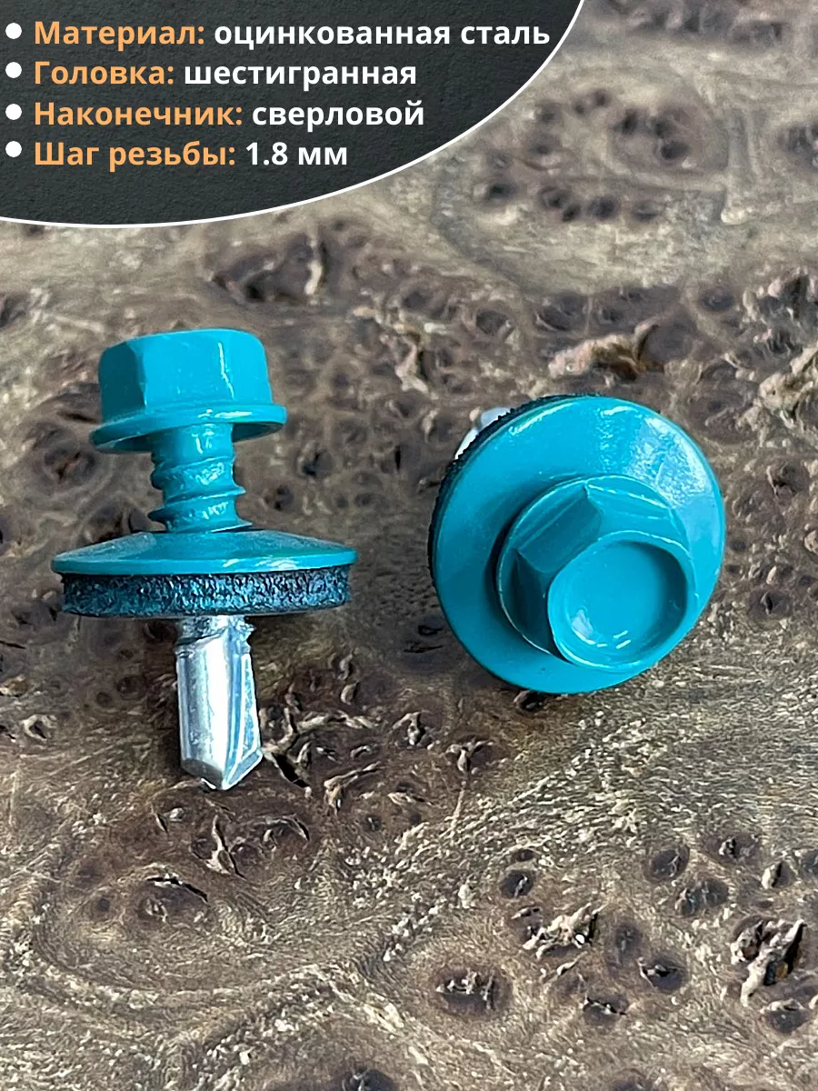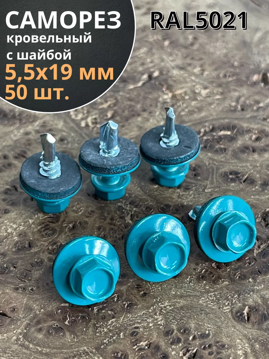 Саморез кровельный, 5,5х19 морская волна RAL5021 50 шт