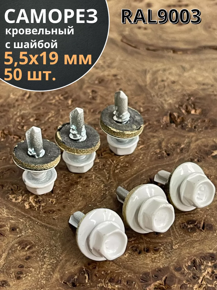 Саморез кровельный, 5,5х19 сигнально-белый RAL9003 50 шт