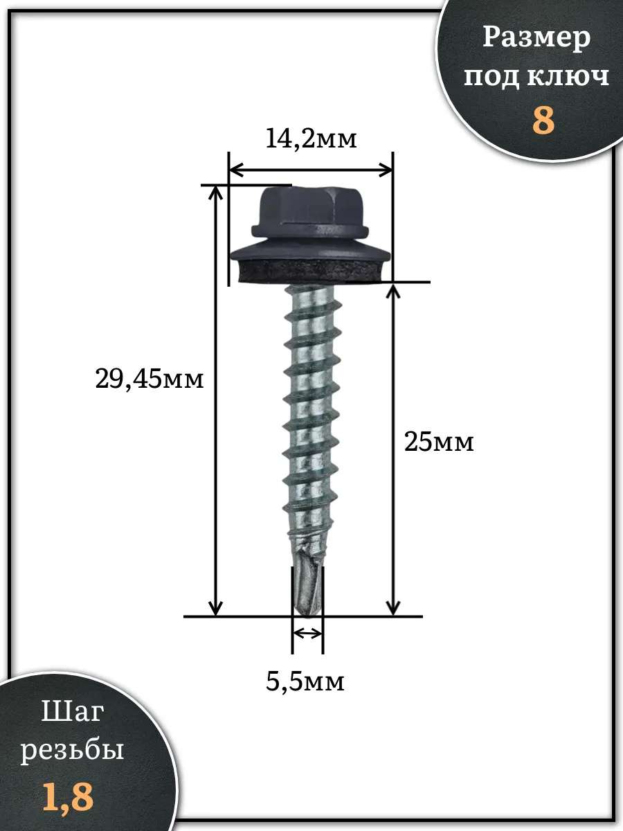 Саморез кровельный, 5,5х25 графитовый серый RAL7024 250 шт