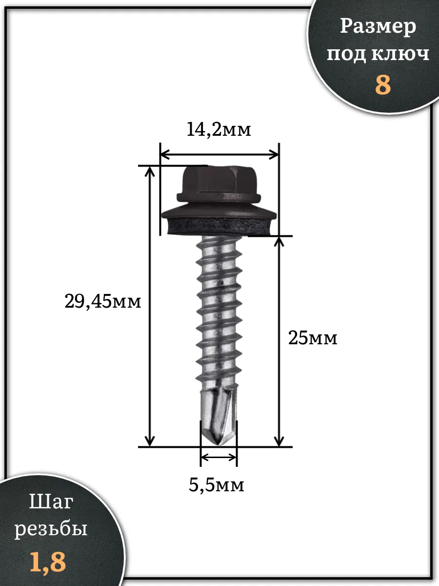 Саморез кровельный, 5,5х25 серо-коричневый RAL8019 250 шт