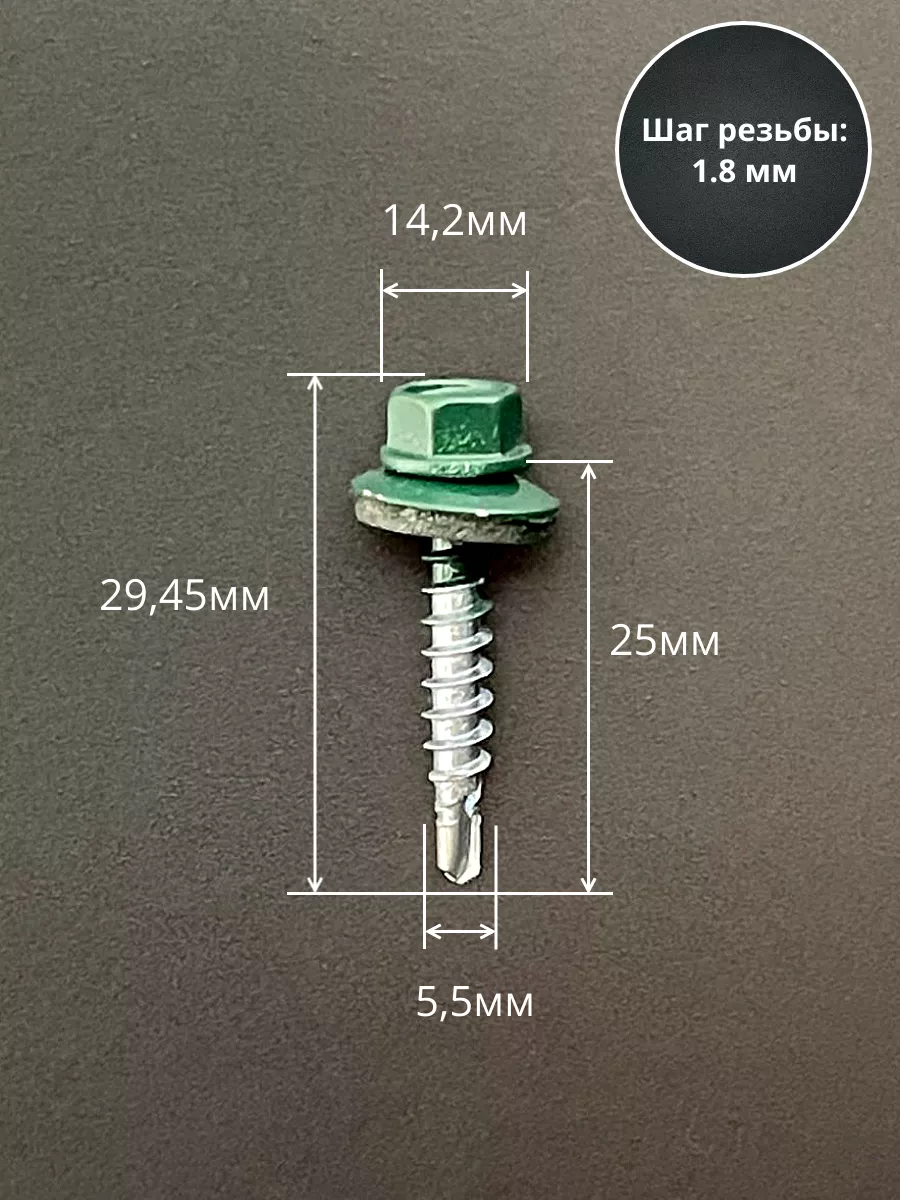 Саморез кровельный, 5,5х25 зеленый мох RAL6005 50 шт