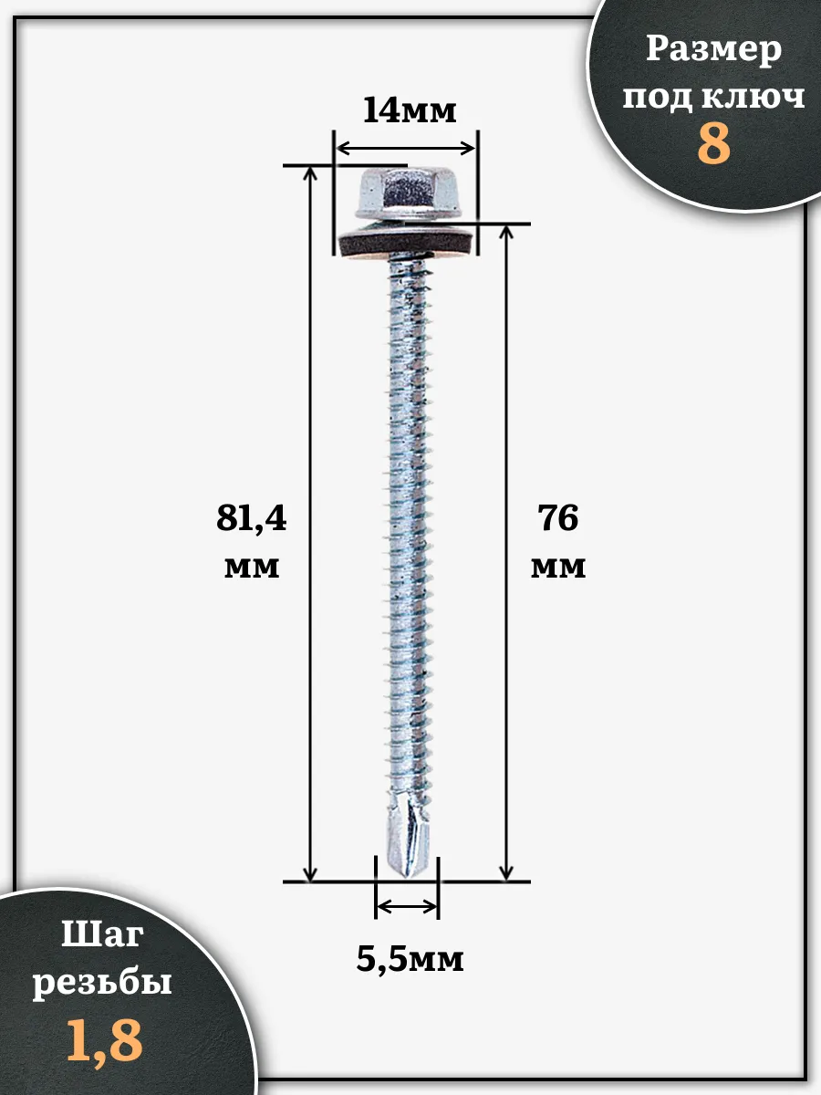 | Саморез кровельный 5,5х76 мм с шайбой (под сверло),ОЦ 100шт | B03005507633307ф100 | 1 шт. |