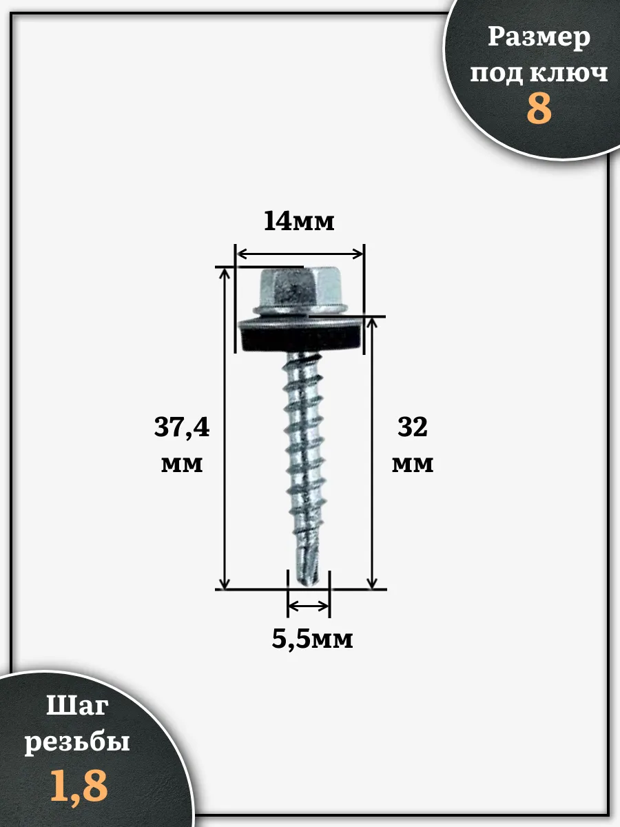 | Саморез кровельный 5,5x32 мм с шайбой (под сверло),ОЦ 250 шт | B03005503237207ф250 | 1 шт. |
