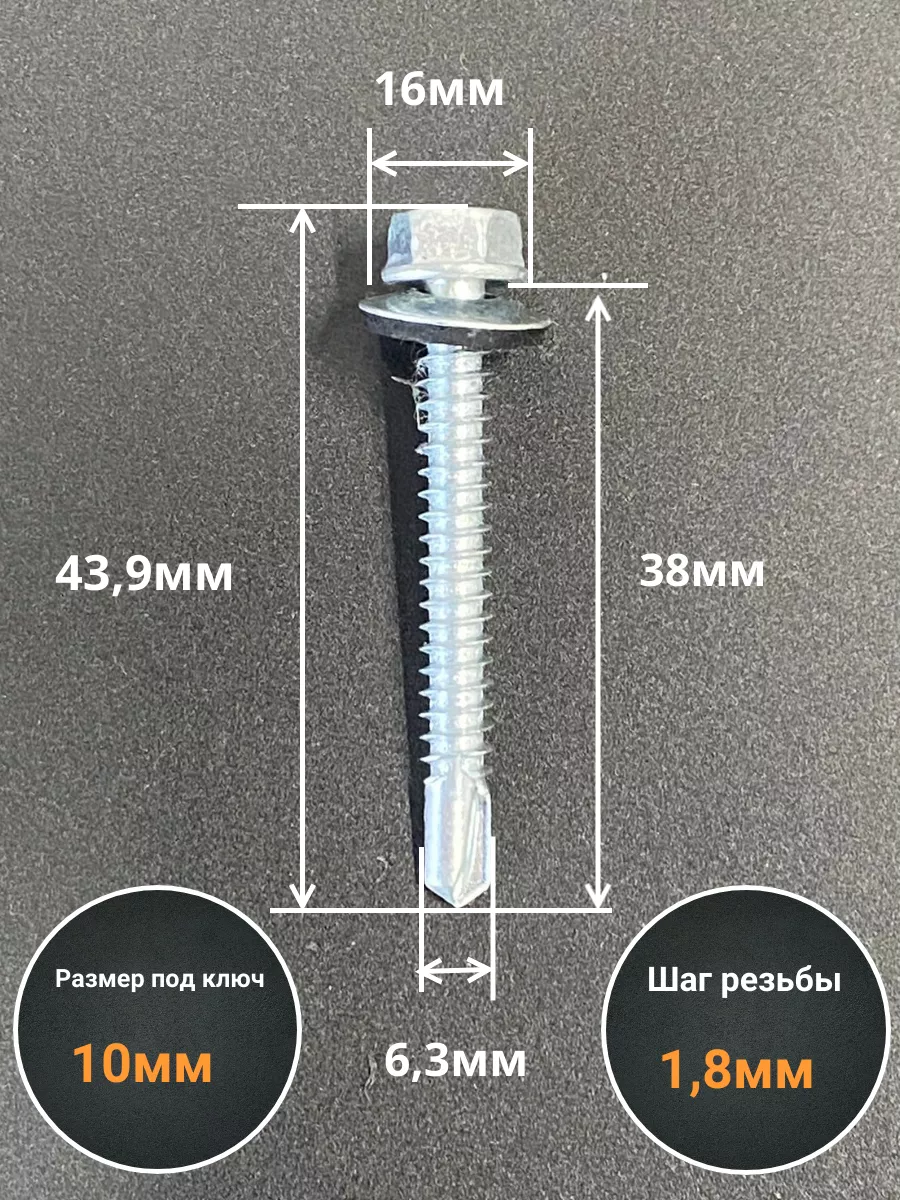 Саморез кровельный 6,3х38 мм с шайбой (под сверло),ОЦ 100шт