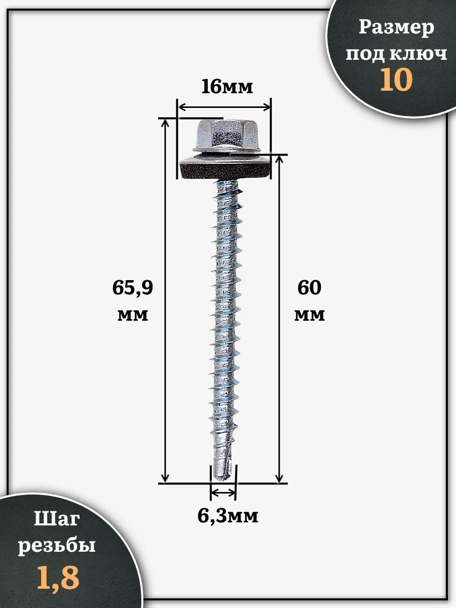 Материал: Оцинкованная сталь Саморез кровельный с шестигранной головкой и уплотнительной EPDM шайбой используется для создания точки резьбового крепления листового металла и профилей к стальным подконструкциям и каркасам. Служит в качестве элемента точечного крепления для водонепроницаемого соединения типа “металл - металл”. Самосверлящий шуруп предназначен для быстрой установки за один этап. Самосверлящий шуруп из оцинкованной стали представляет собой резьбовой элемент крепления для монтажа металлических кровельных покрытий. Шестигранный шуруп оснащен пресс-шайбой интегрированной с уплотняющей прокладкой из синтетического каучука EPDM. Параметры резьбы и форма наконечника самореза в виде сверла максимально адаптированы для крепления кровельного металла к металлическим подконструкциям.