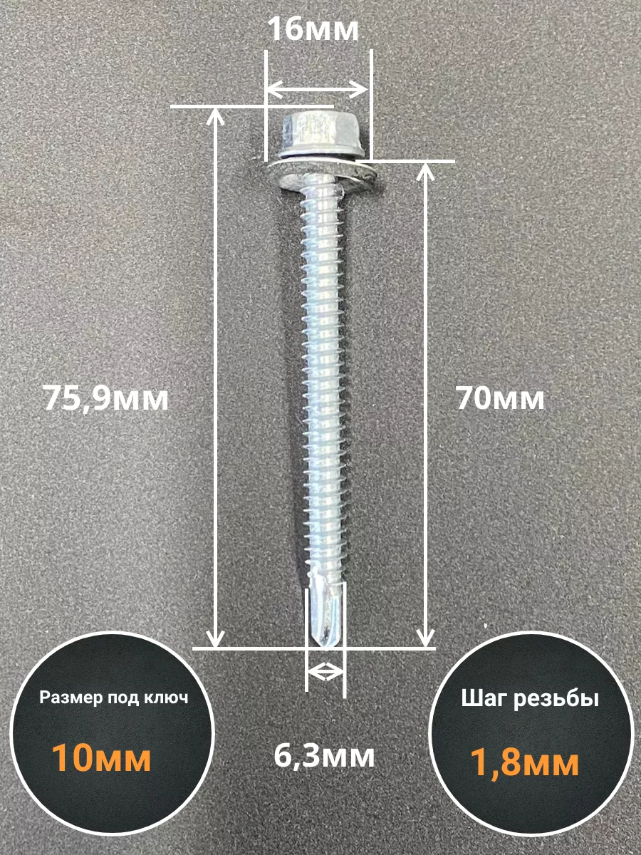 Саморез кровельный 6,3х70 мм с шайбой (под сверло),ОЦ 100шт