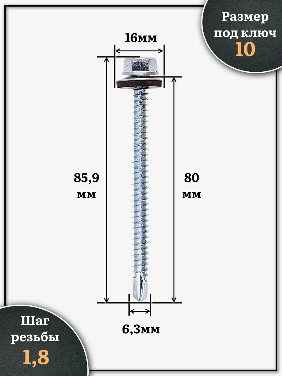 Саморез кровельный 6,3х80 мм с шайбой (под сверло),ОЦ 50шт.