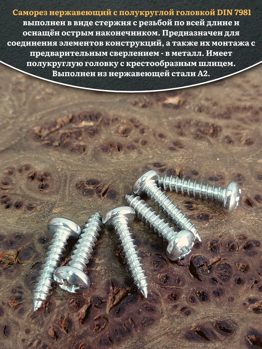 Саморез нержавеющий полукруглая гол. 2,9х16 DIN7981 , 50 шт.