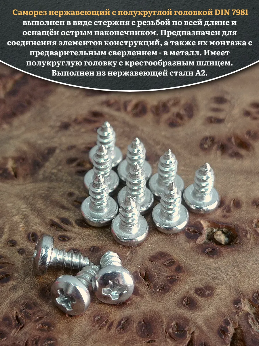 Саморез нержавеющий полукруглая гол. 2,9х9,5 DIN7981 ,20 шт.