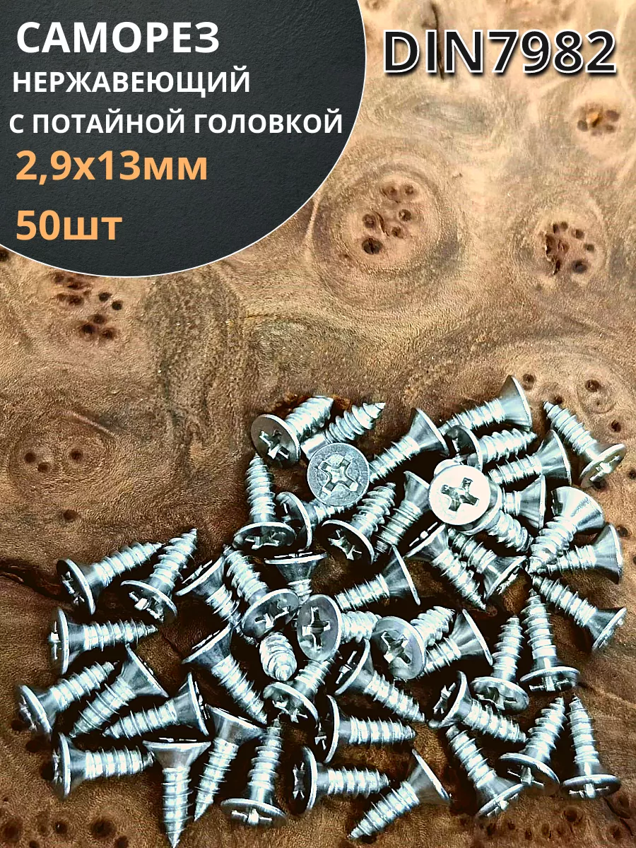 Саморез потайной нержавеющий 2,9х13 РН DIN7982 ,50 шт.
