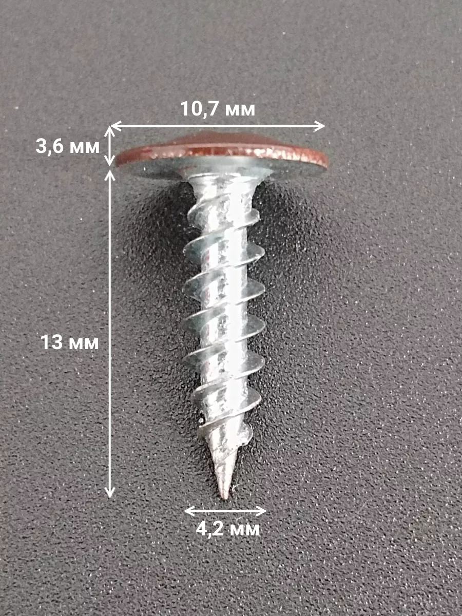 Саморез с прессшайбой 4,2х13 острый RAL8017 (темно-коричн), 50 шт.