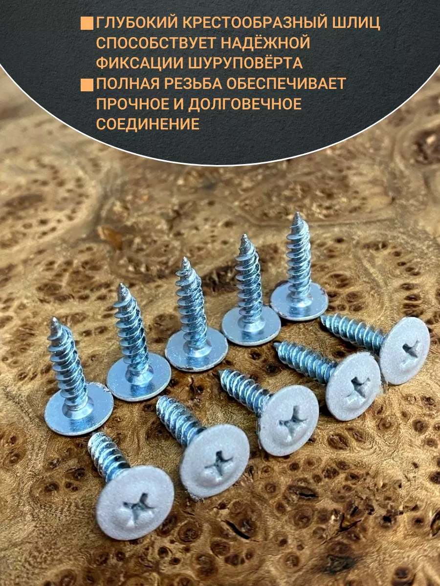 Саморезы с прессшайбой имеют широкую полусферическую головку с крестовым шлицем и стержень с частой резьбой. Обеспечивают прочное крепление и защищают материалы от продавливания. С их помощью к металлическому или деревянному основанию крепят фанеру, листовую сталь, оргалит, профнастил и др. С острым наконечником – для монтажа на деревянное основание; с наконечником-сверлом – для монтажа по металлу.