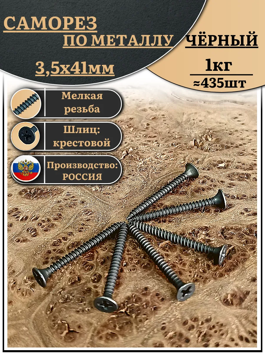 Саморез шуруп по металлу 3,5х41 мелкая резьба, чёрный 1 кг.