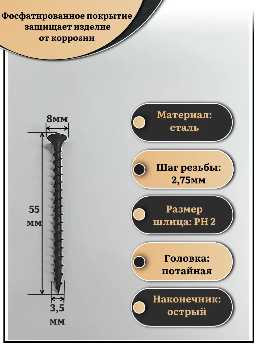 Покрытие саморезов и шуруповФосфатированный