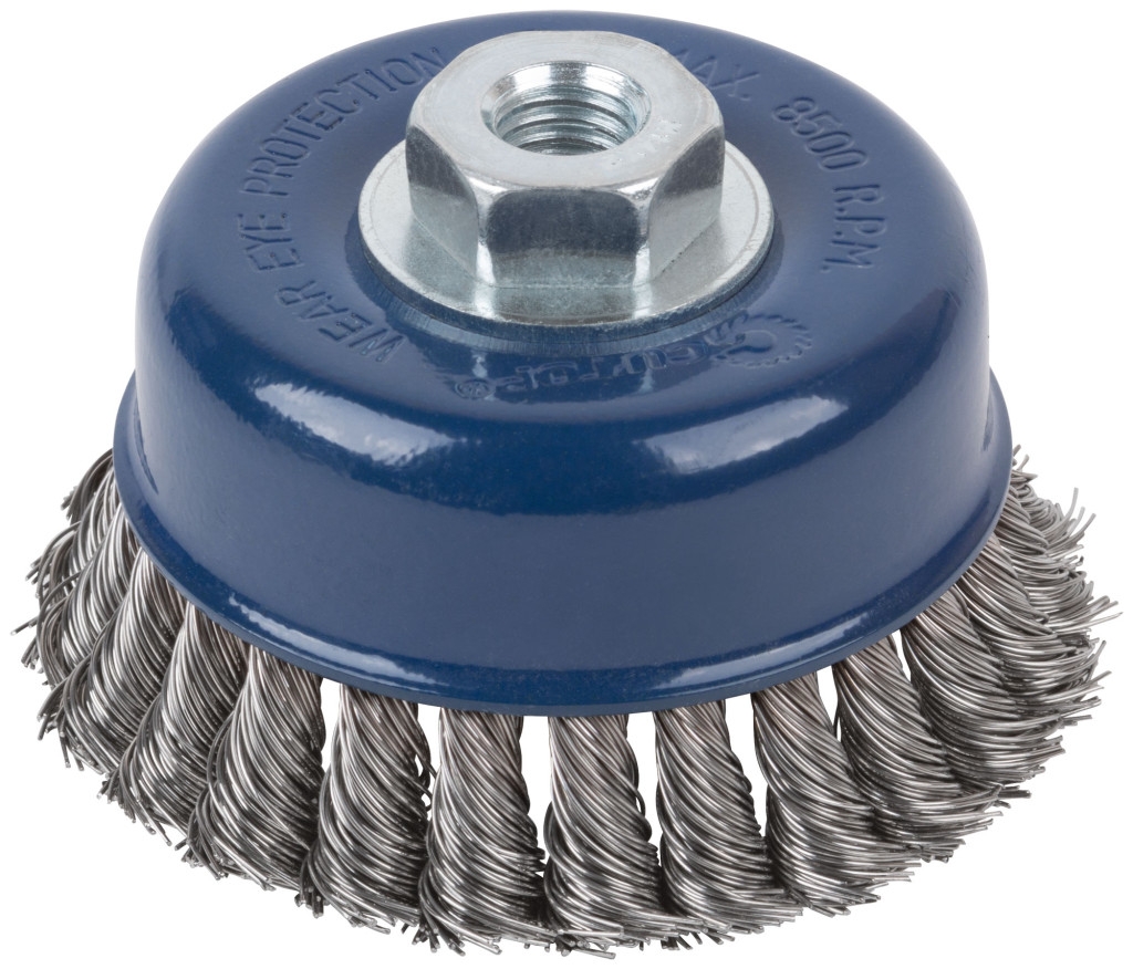 Щетка для УШМ, тип «Чашка», М14, отлично подходит для обработки больших плоскостей. Форма «Чашка» обеспечивает хорошую площадь прилегания к поверхности. Конструкция щетки оснащена усиленной гайкой с шайбой (кроме D65), которая способствует предотвращению деформации изделия. Идеальная балансировка щеток значительно продлевает срок службы инструмента. Металлическая проволока 0,5 мм.