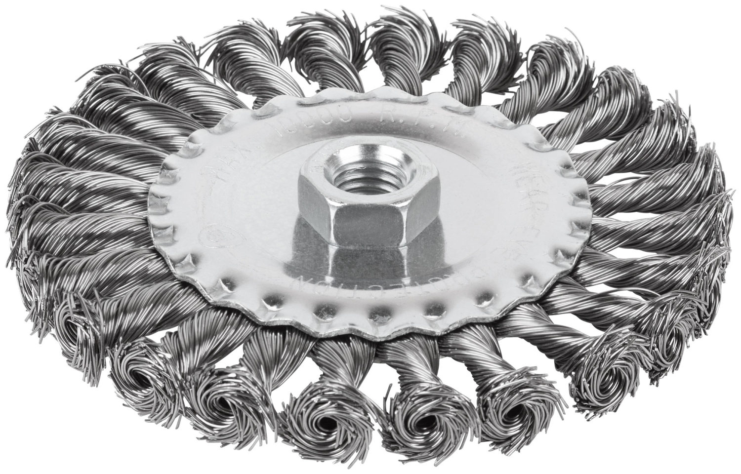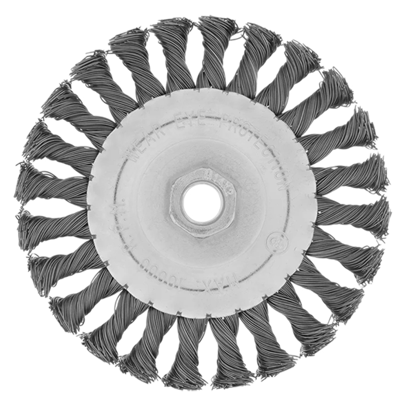 Щетка для УШМ, тип «Плоская». Предназначена для очистки различных металлических и деревянных поверхностей, снятия ржавчины, удаления лакокрасочных покрытий и других загрязнений. Тип «Плоская» оптимально подходит для обработки углов, пазов, изгибов и других труднодоступных участков. Грубая зачистка, стальная проволока 0,5 мм.